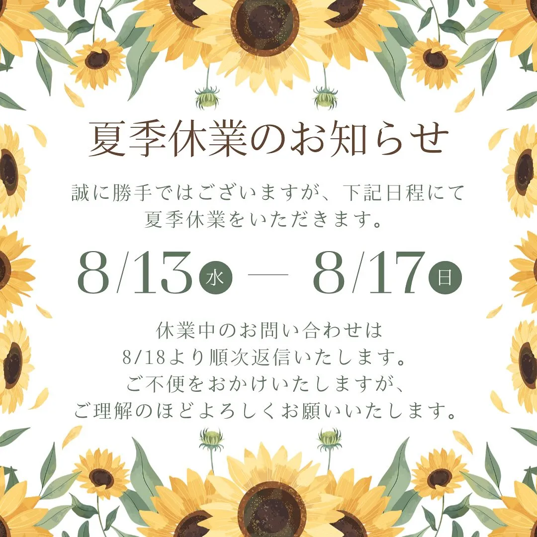 🌻夏季休業のお知らせ⛵️