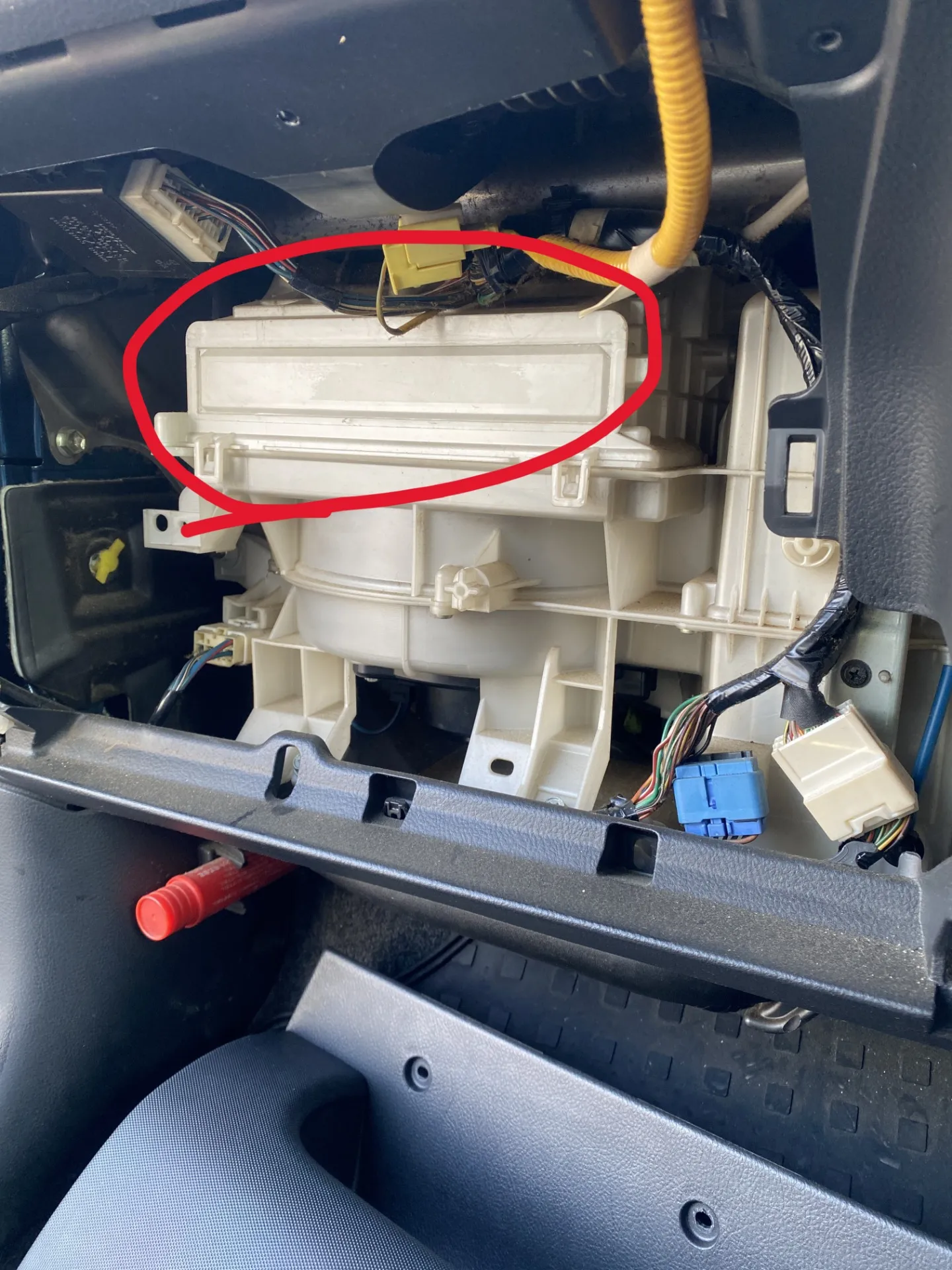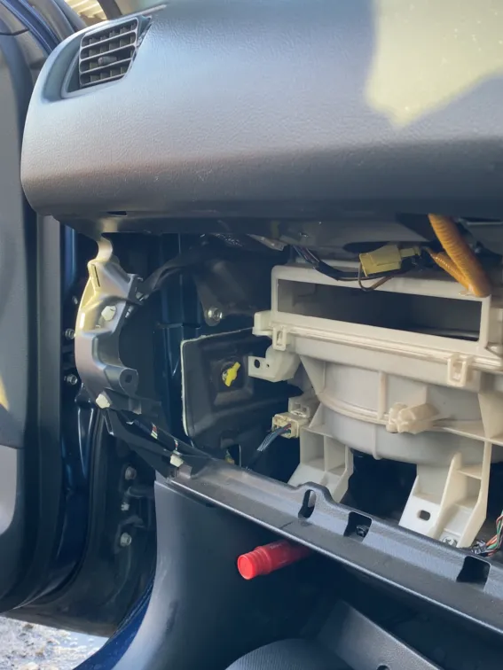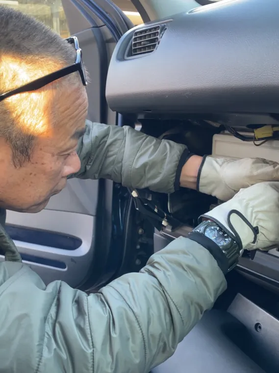 まずはグローブボックスを取り外し、車内での作業に。