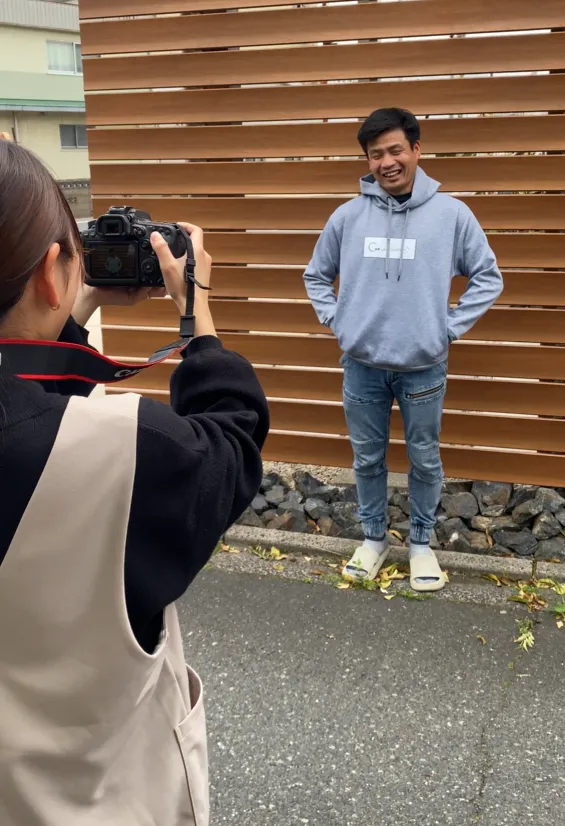 元気いっぱいに笑う人もいれば、少し照れながら微笑む人もいて、それぞれの個性が出た撮影に。