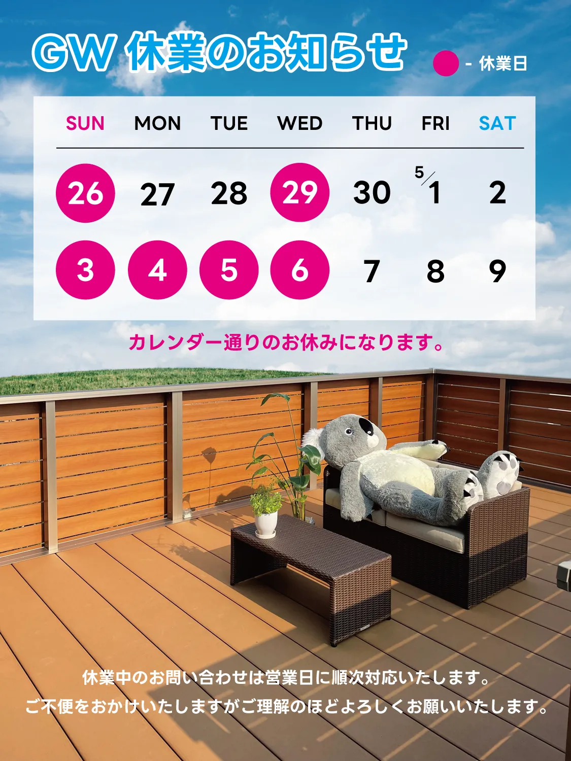 ゴールデンウイーク休業のお知らせ