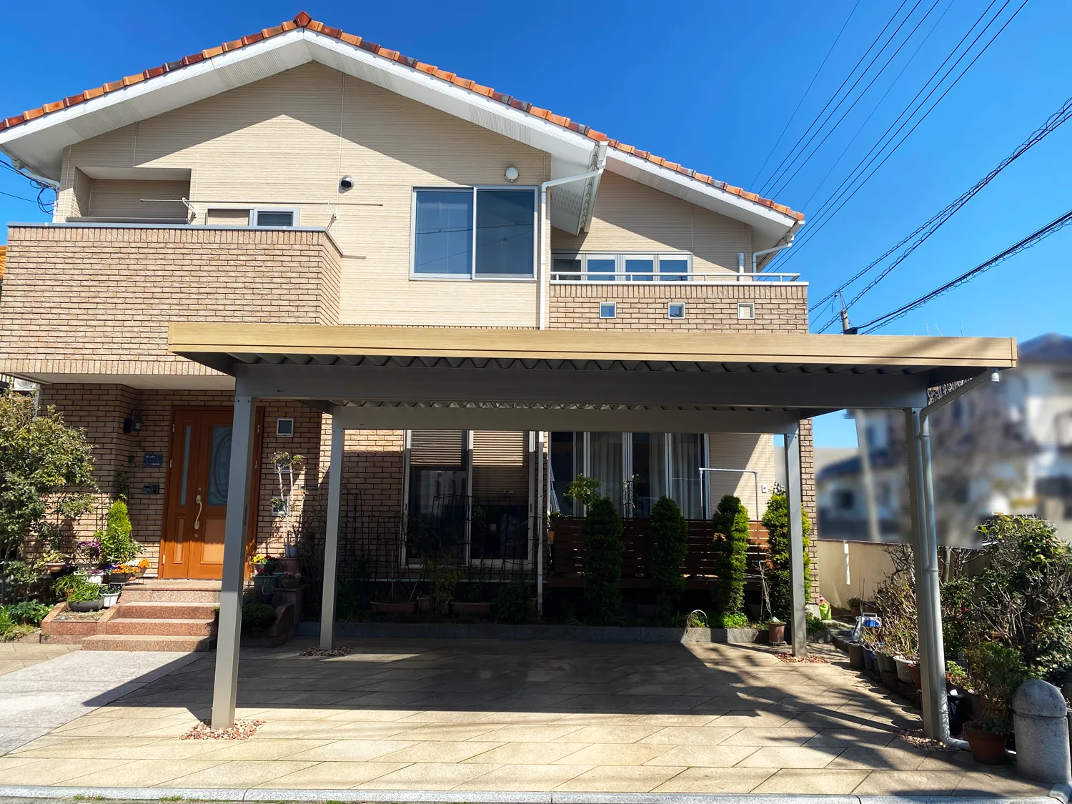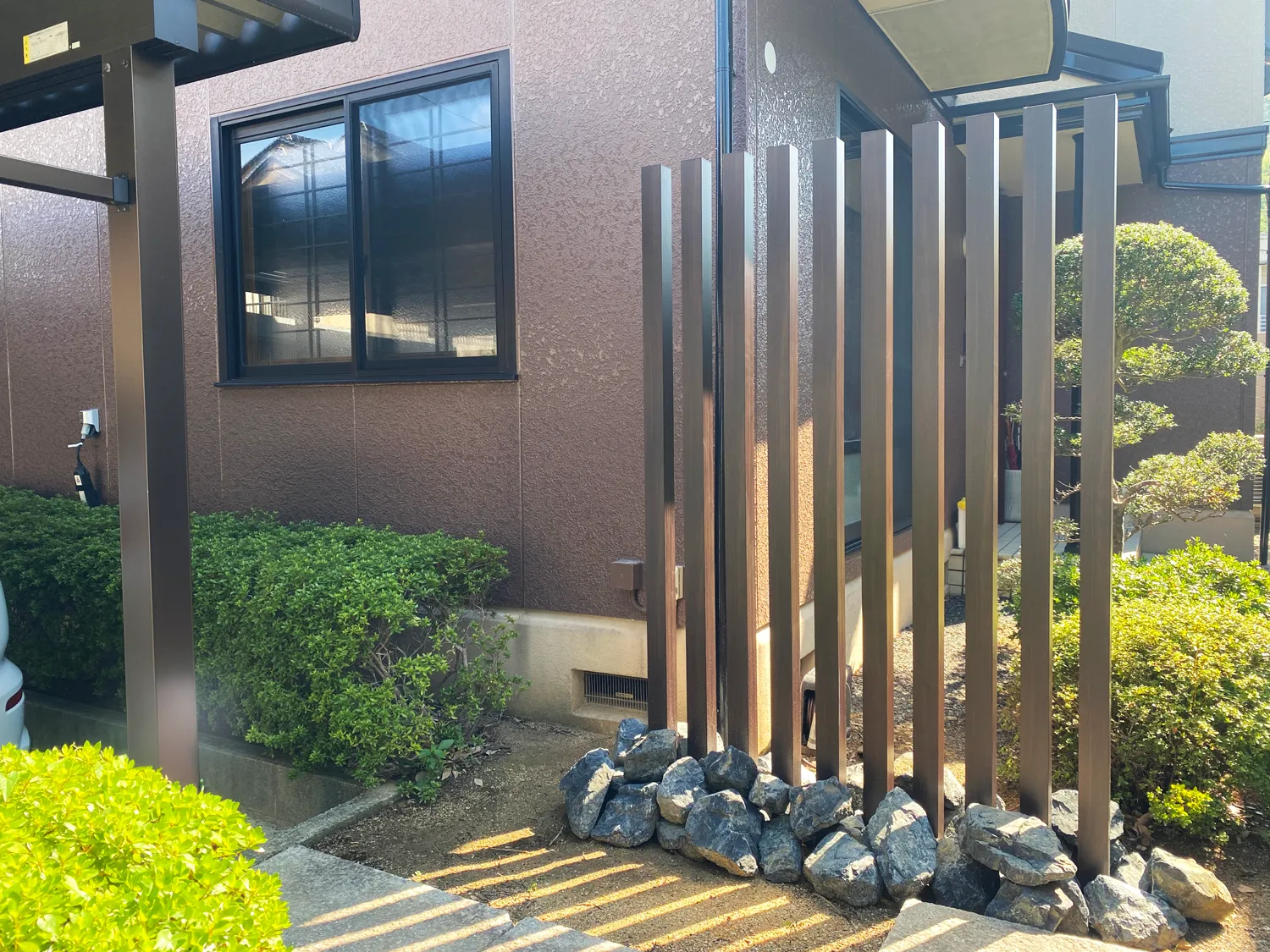 木目調素材は植栽との相性も良く、四季折々の緑や花と自然に調和します。これにより、外構空間がより豊かで心地よいものとなり、家族や訪れる人々に癒しの時間を提供します。
