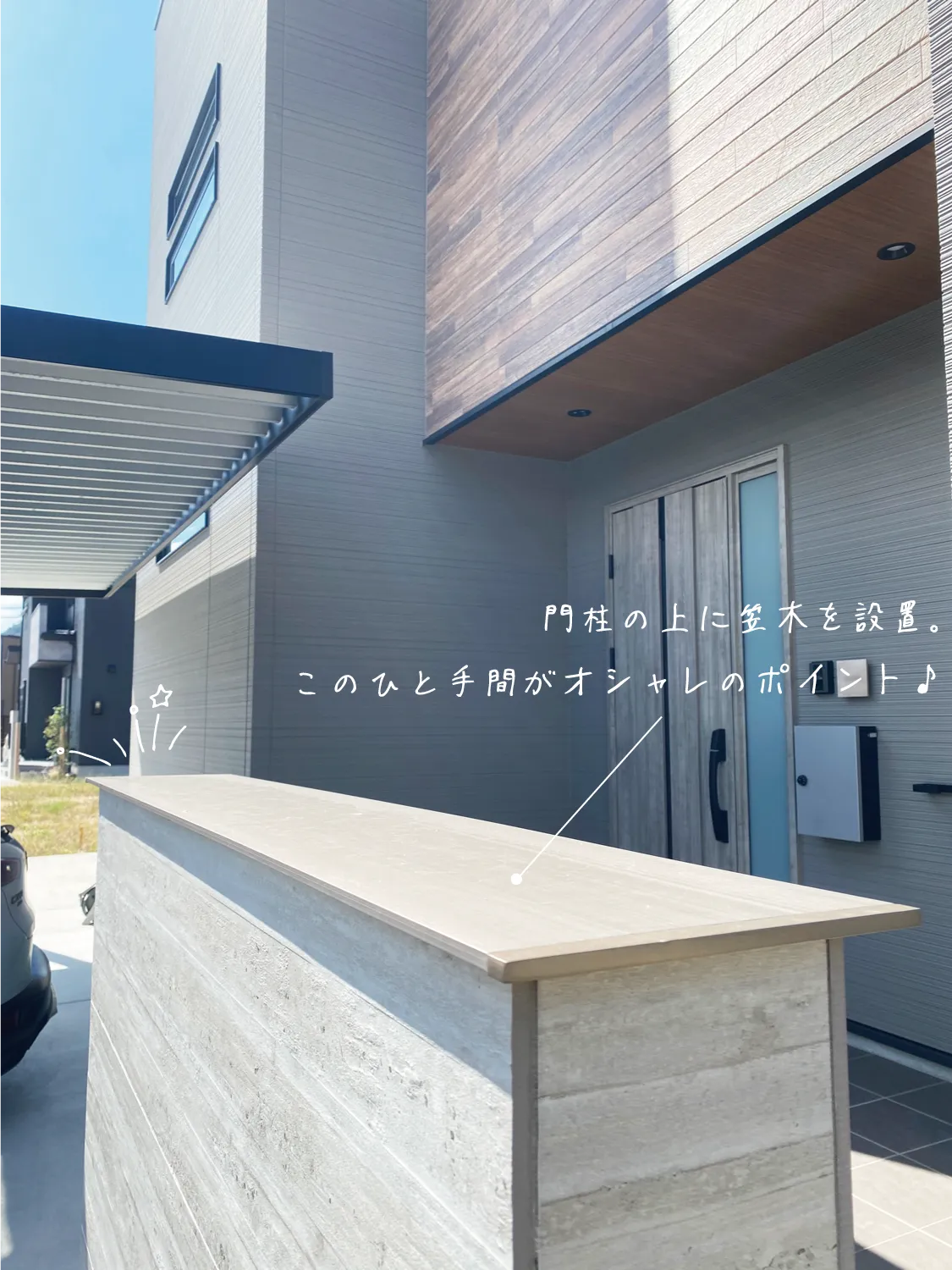 外構のポイントとなるのは、重厚感のある「セラウォール」を取り入れたデザイン。