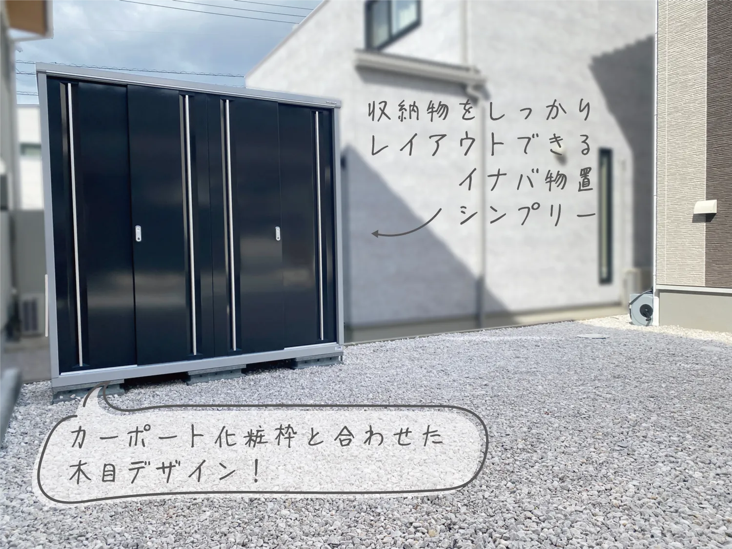 鳥取市・T様邸 心地よく暮らせるシンプルエクステリア 2025/11/04 ご希望いただいていた場所にカーポートを設置したことで、 雨の日や雪の日でも濡れずにスムーズに車へ乗り降りできるようになりました。 荷物の出し入れもラクになり、日々のちょっとした動作がぐっと快適に♪ 収納力ばっちりの物置をプラス。 お庭まわりのアイテムをスッキリまとめられる空間ができ、使い勝手がアップしました。 無駄を省いたシンプルなデザインの中に、暮らしやすさがしっかりつまった、心地よいお庭が完成です。