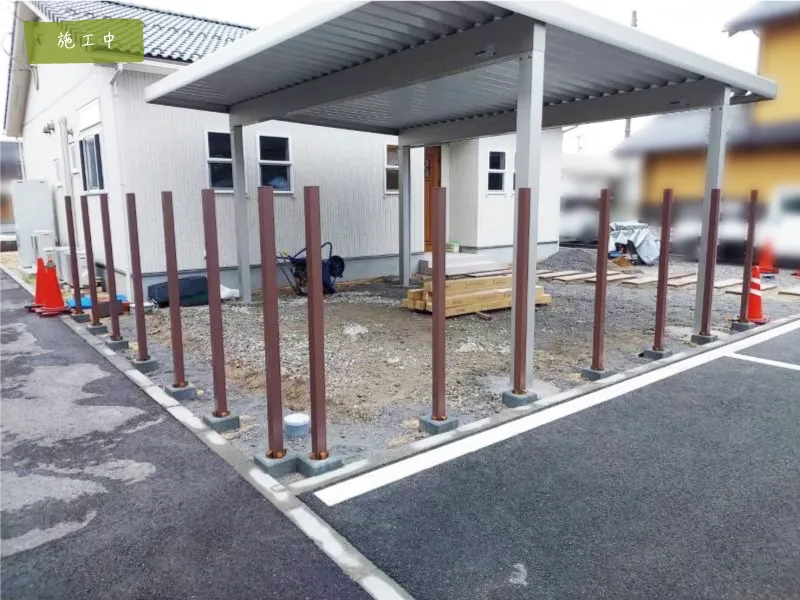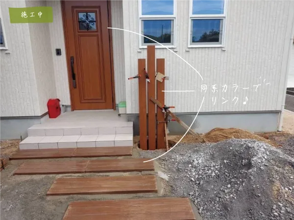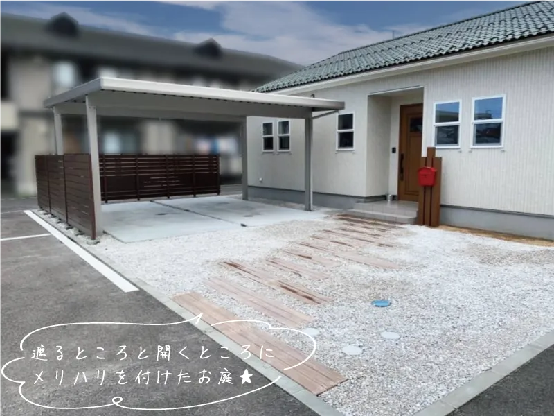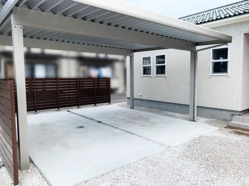東伯郡・T様邸 プライベートにも配慮した開放感あるオープン外構 2025/12/02 雨の日も安心して玄関まで移動できるよう、カーポートは建物に寄せて設置し、 スムーズな動線を確保しました。 アプローチにはコンクリート製の枕木を使用しているため、車の乗り入れも問題ありません。 アンティークテイストが漂う素敵なお庭に仕上がりました。 カーポートや外観の色味と、フェンス・枕木・門扉のカラーが調和し、 全体の統一感がぐっと高まりました。